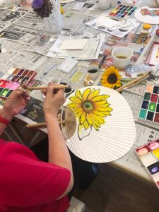 うちわに絵手紙を描くという夏らしい内容の講座となりました。
